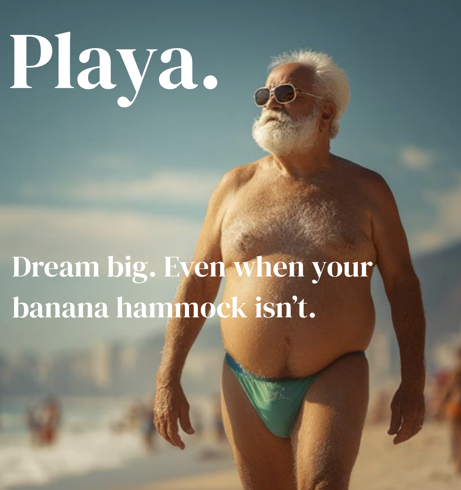 Part of the joy of creating a new brand platform is the ideation work during the process. While I like the pun on ‘playa’ – being Spanish for ‘beach’ – for our international clientele, the banana hammock felt like a bit of a stretch (pun intended). So I buried it in the sand where it belonged.