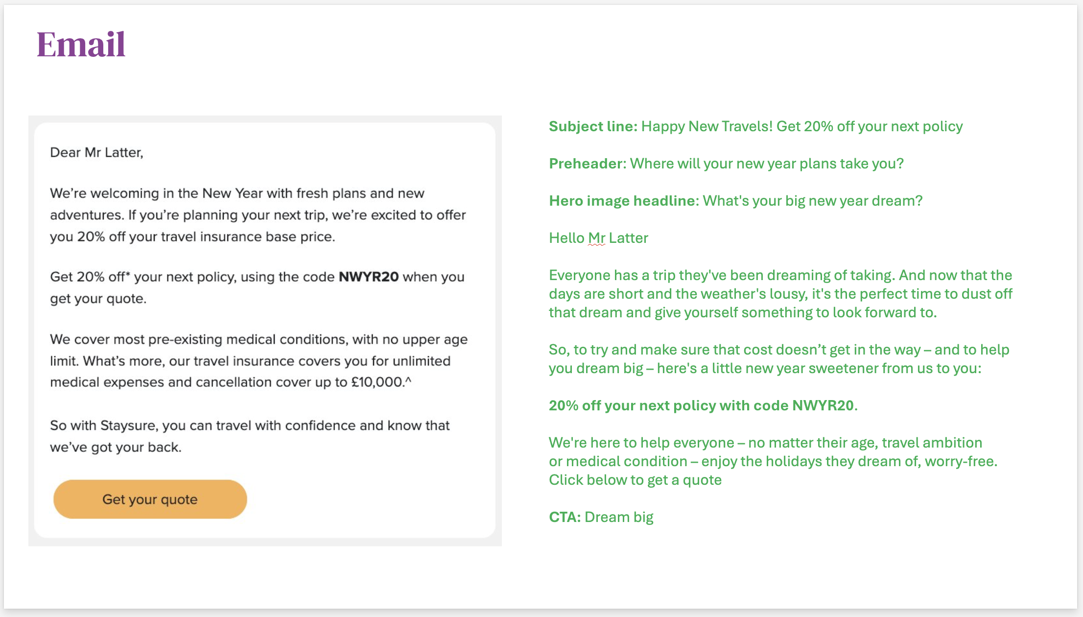As Head of Content & Tone of Voice, I repositioned the UK’s leading travel insurer from reassurance-led and compliance-heavy to aspiration-led and culturally relevant.